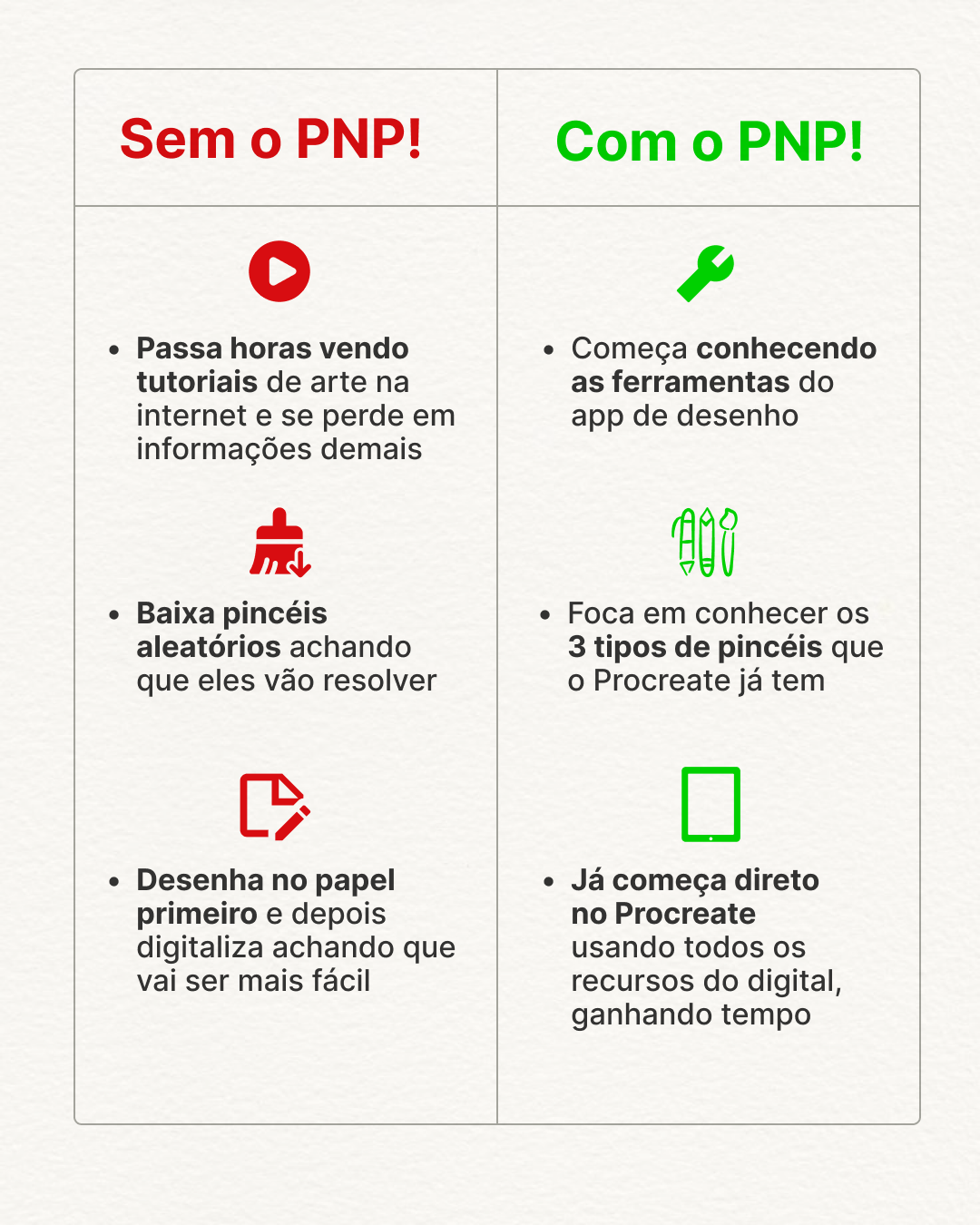 No PNP, você não vai apenas “aprender a mexer no Procreate”.