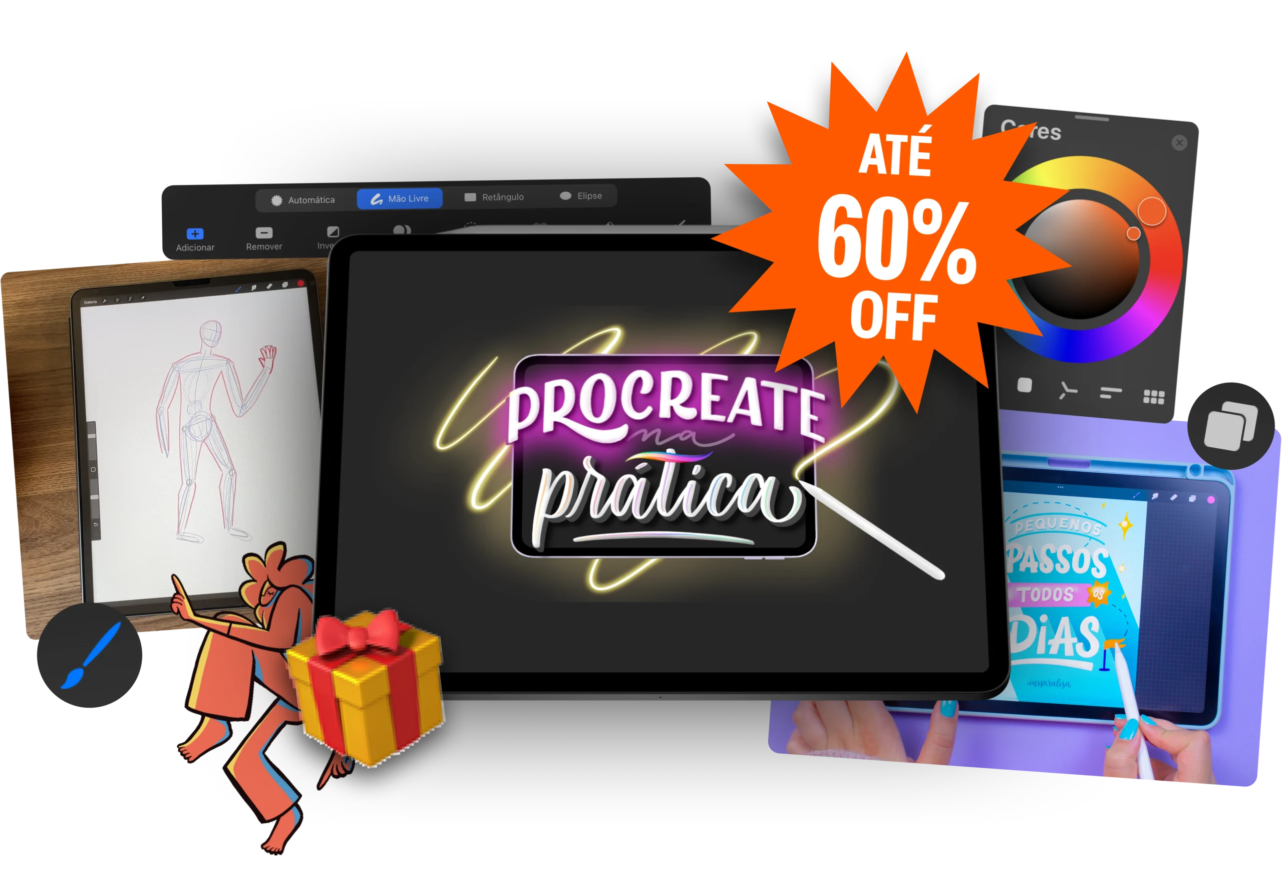 Foi quando muitas pessoas começaram a pedir por um curso onde eu ensinasse tudo que eu sei de uma forma fácil, rápida e com uma didática simples. Então eu decidi criar o Procreate na prática, para ajudá-las a resolver esse problema de uma vez por todas!